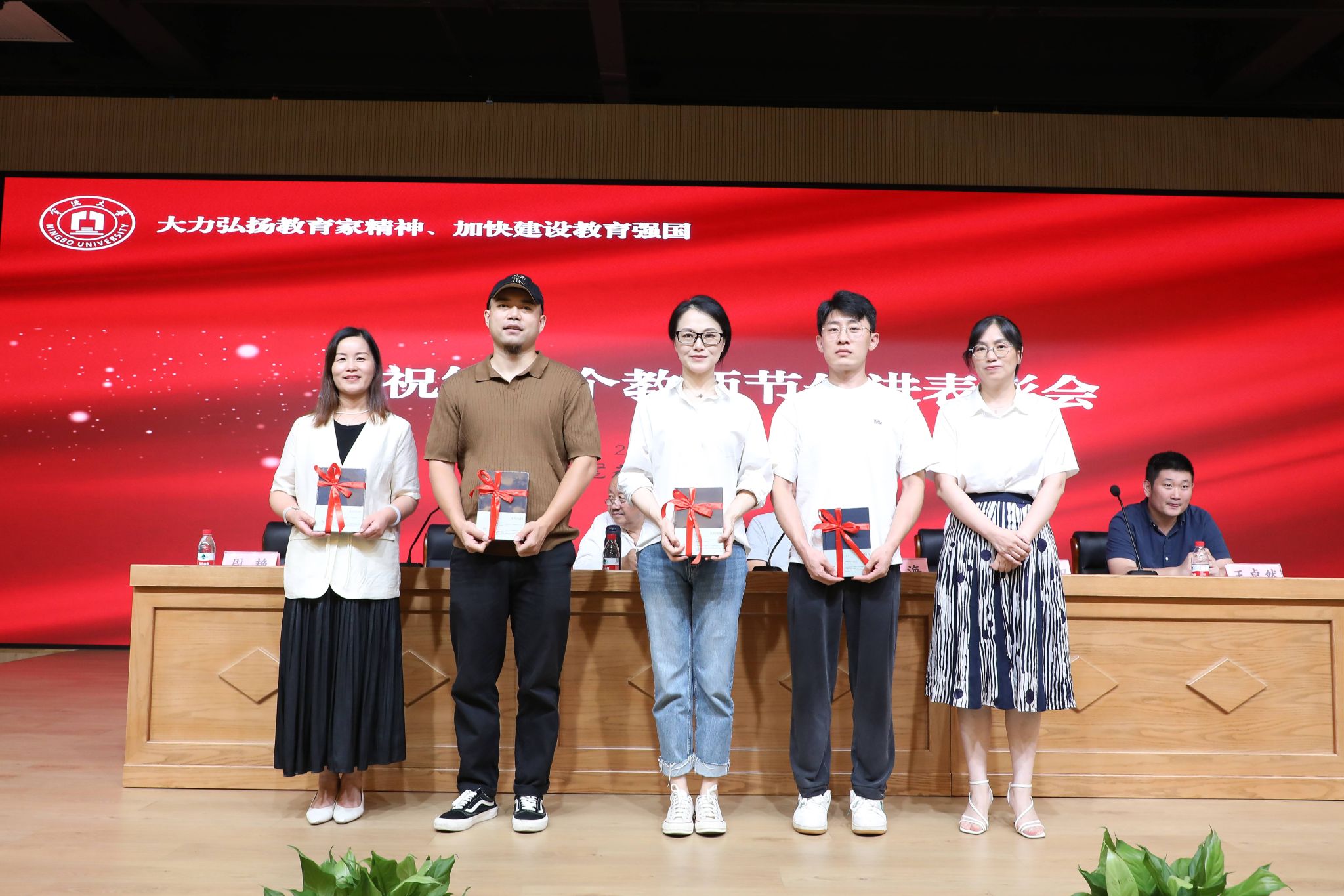 在朱学林报告厅召开教师节先进表彰会暨新学期教职工大会与师德师风专题学习教育会。会议由党委书记韩雯琛主持。